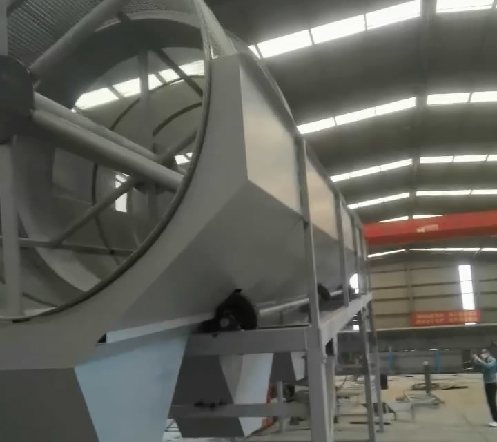 2、滾筒篩2000*11000mm 一臺 不銹鋼篩網 網孔分別為4*4mm 1500*4900mm 3片 1.5mm絲, 5*5mm 1500*4900mm 1片 1.5mm絲 , 10*10mm 1500*4900mm 2片 2.5mm絲, 25*25mm 1500*4900mm 1片 3mm絲, 帶收料倉厚3mm 帶支腿 物料最大塊40mm