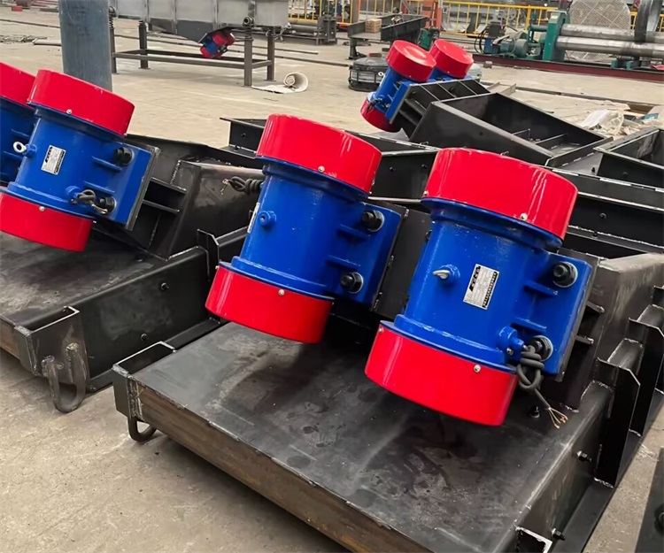 客戶定制設備為吊式電機振動給料機三臺,碳鋼材質,配變頻器控制箱三臺,含停機制動裝置。設備內側配NM400材質襯板8mm,設備打磨只噴環氧富鋅底漆,厚度為60um(0.06mm)。電源為400V 50HZ 三相電